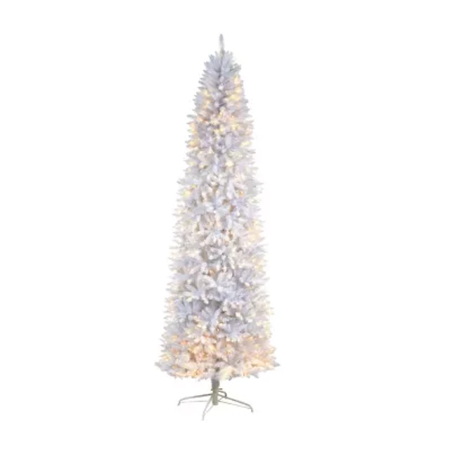 6.5' Prelit Flocked Pacific Pencil Christmas Tree