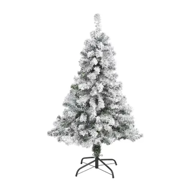 Nearly Natural Flocked Christmas Artificial Pine Tree in Tin Planter