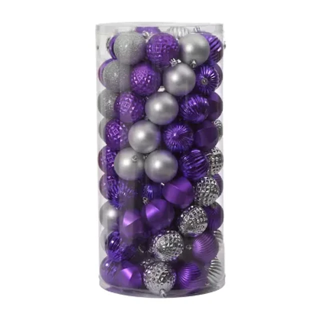 125ct Purple and Red Shatterproof 3-Finish Christmas Ornaments 5.5'' (139.7mm)