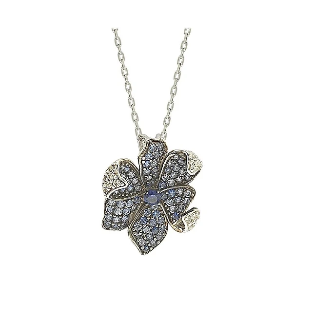 Suzy Levian Sterling Silver Sapphire Flower Petal Pendant