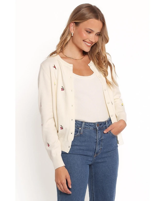Petal and Pup Women's Brittany Placed Embroidery Flower Cardigan