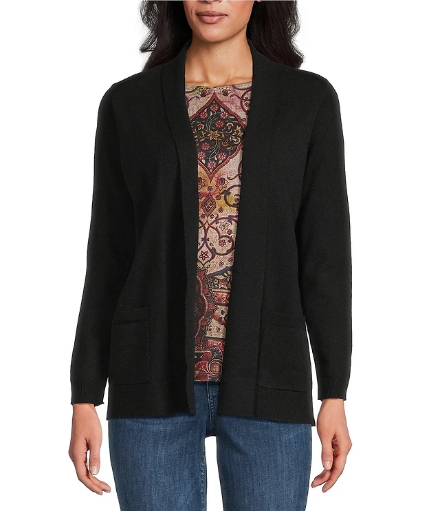 Alfred Dunner Petite Calm Luxe Open Front Rib Trim Cardigan