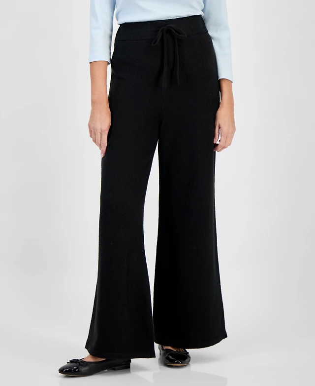 Style & Co Petite Trim Eyelet Wide-Leg Knit Pants, Macy's Exclusive