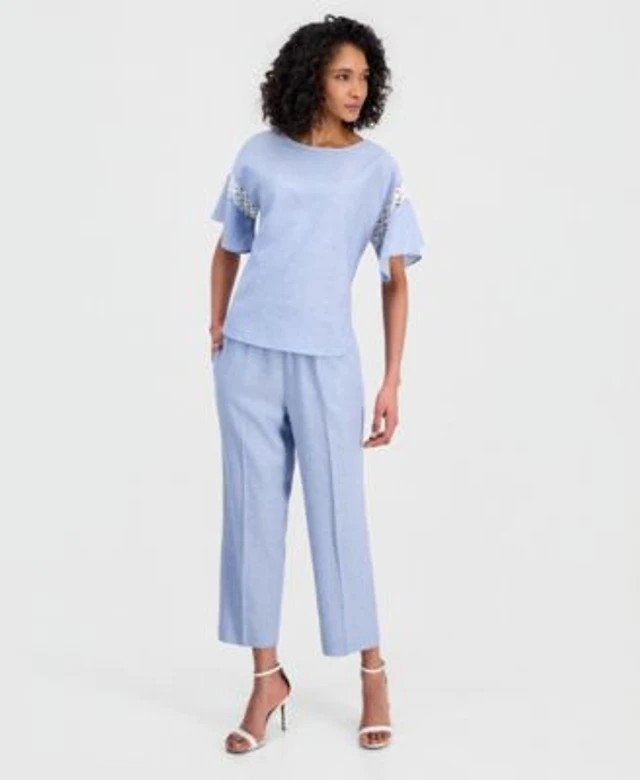 Anne Klein Womens Flutter Sleeve Lace Trim Top Drawstring Pants
