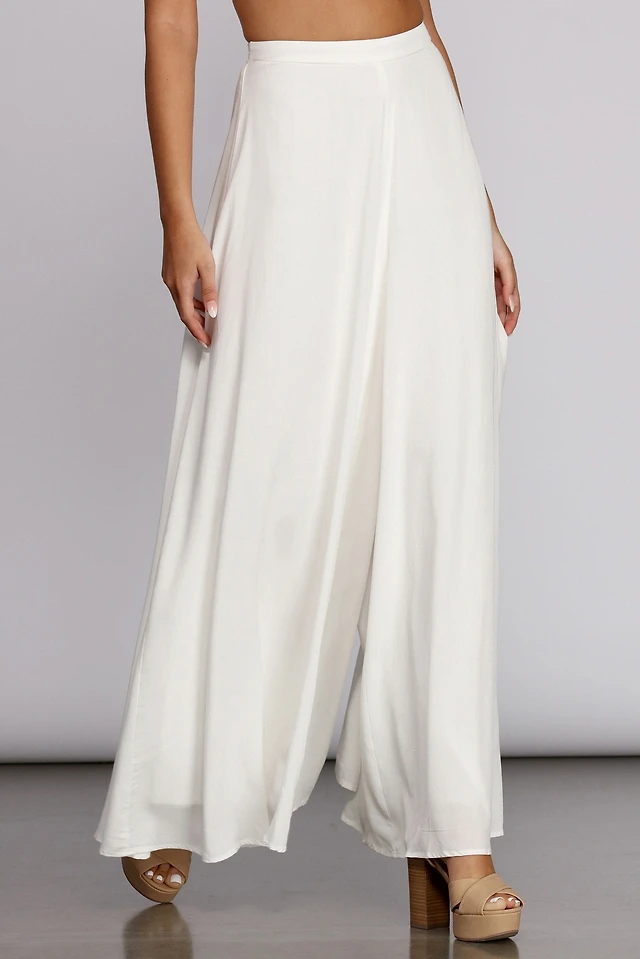 On A Curve Asymmetrical Waist Wide-Leg Pants