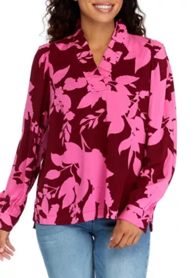 Petite 3/4 Sleeve Hydrangea Knit Top