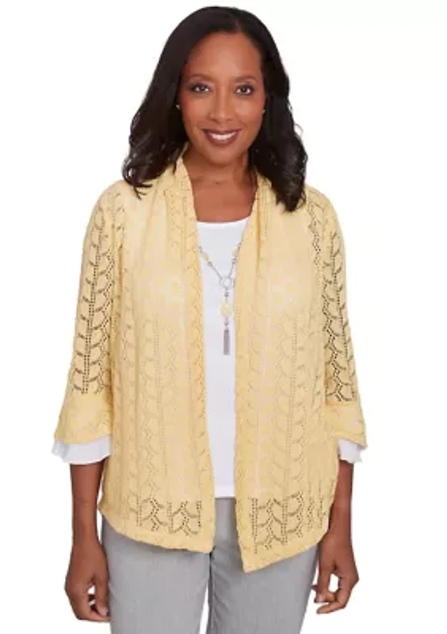 Ali Miles Petite Size Jacquard Wire Collar 3/4 Cuff Sleeve Button-Front Tunic