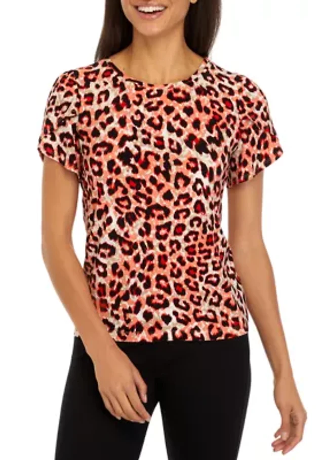Ann Taylor Petite Animal Print Mixed Media Shell Top _Black Women's