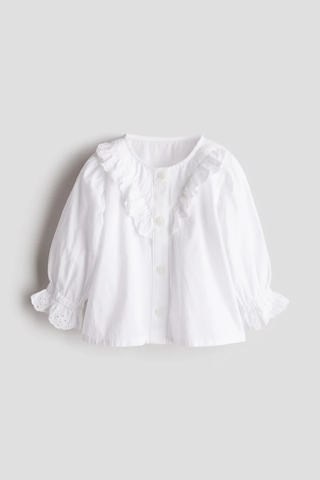 Ann Taylor Eyelet Ruffle Collar Shirt White Women's
