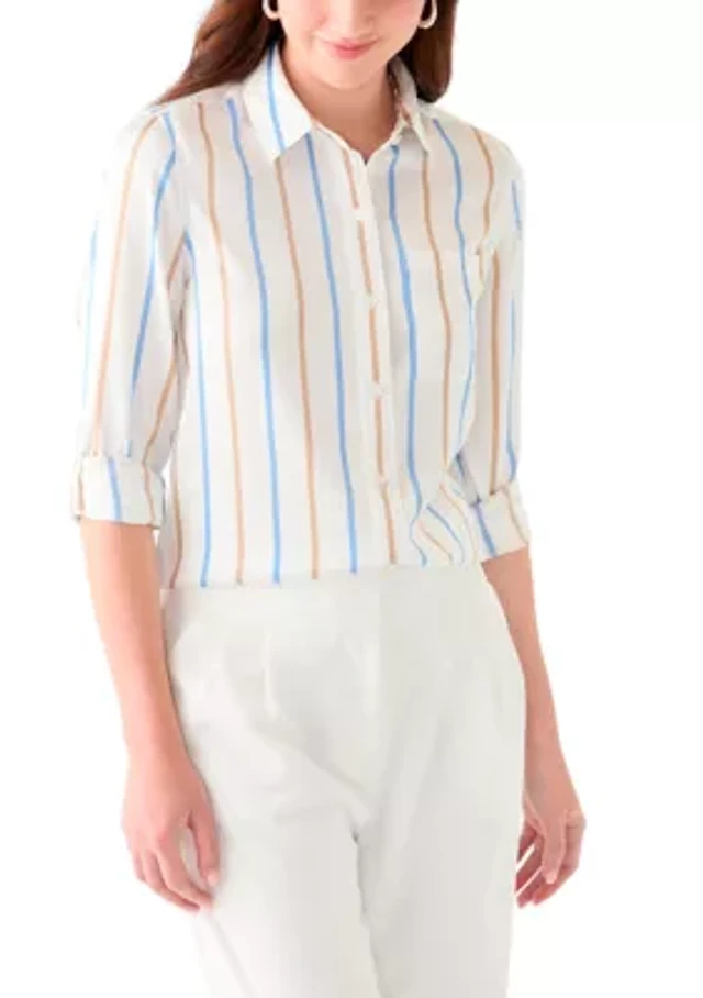 Ny Collection Petite 3/4 Sleeve Roll Tab Utility Blouse