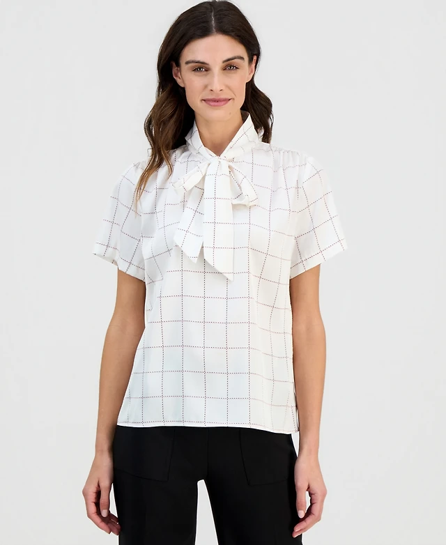 Calvin Klein Petite Cotton Collared Button-Down Blouse