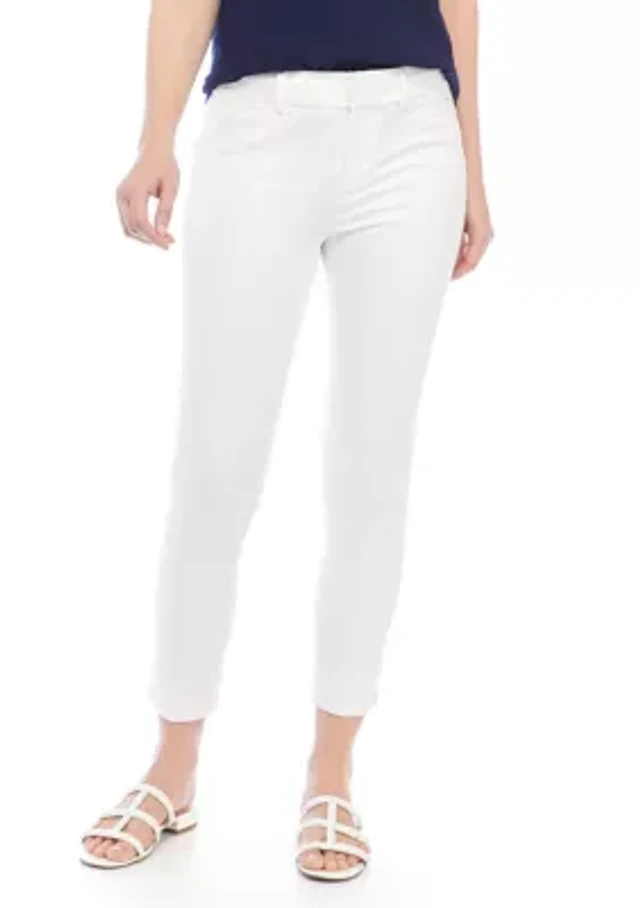 Multiples Petite Size Solid 4-Way Stretch Ponte Elastic No-Waist Pintuck Pull-On Ankle Pants