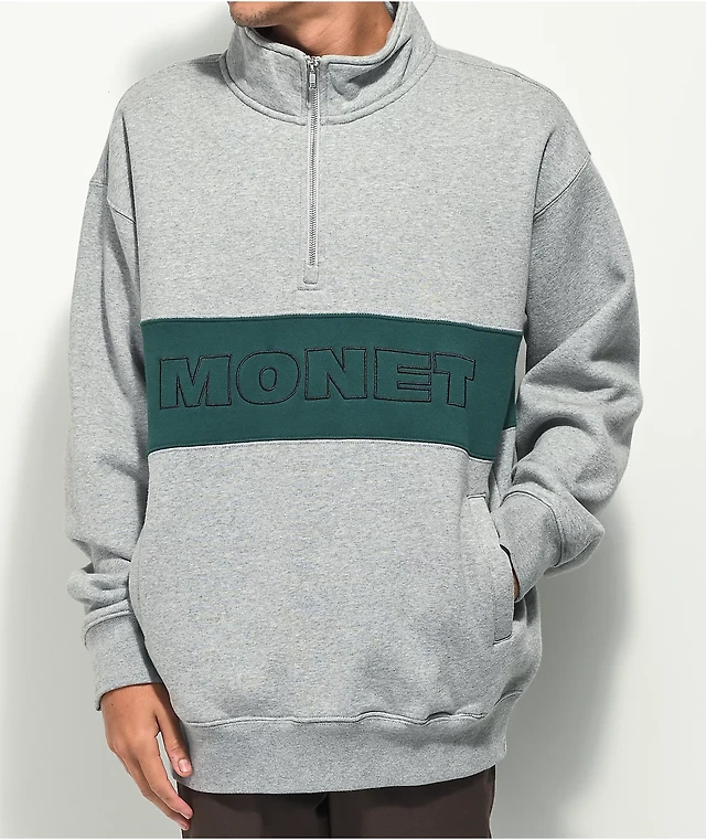 Monet Hubba Grey & Green Quarter Zip Sweatshirt