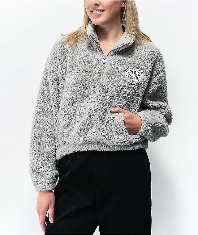 Santa Cruz Club Oval Dot Tan Sherpa Half-Zip Sweatshirt