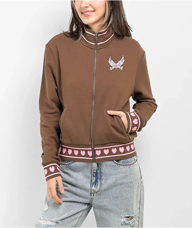 Empyre Bria Hearts Brown Zip Sweatshirt