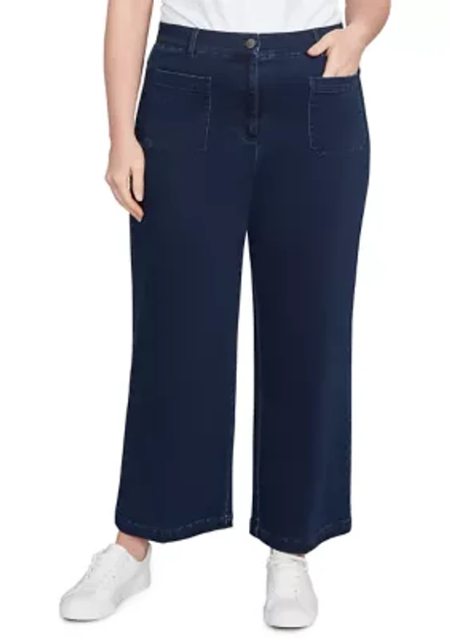 Tommy Hilfiger Women's Wide-Leg No-Waistband Cropped Denim Jeans