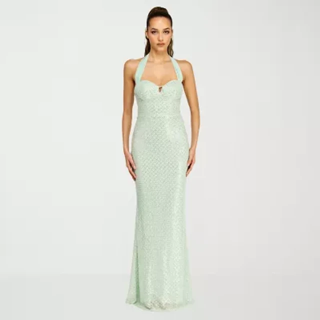 B&A By Betsy and Adam Petite Halter Neck Sequin Dress