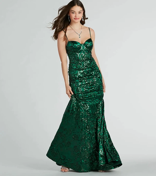 Lindsay Corset Mermaid Sequin Glitter Formal Dress