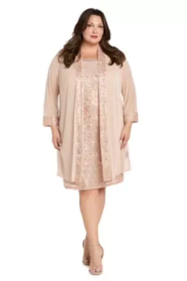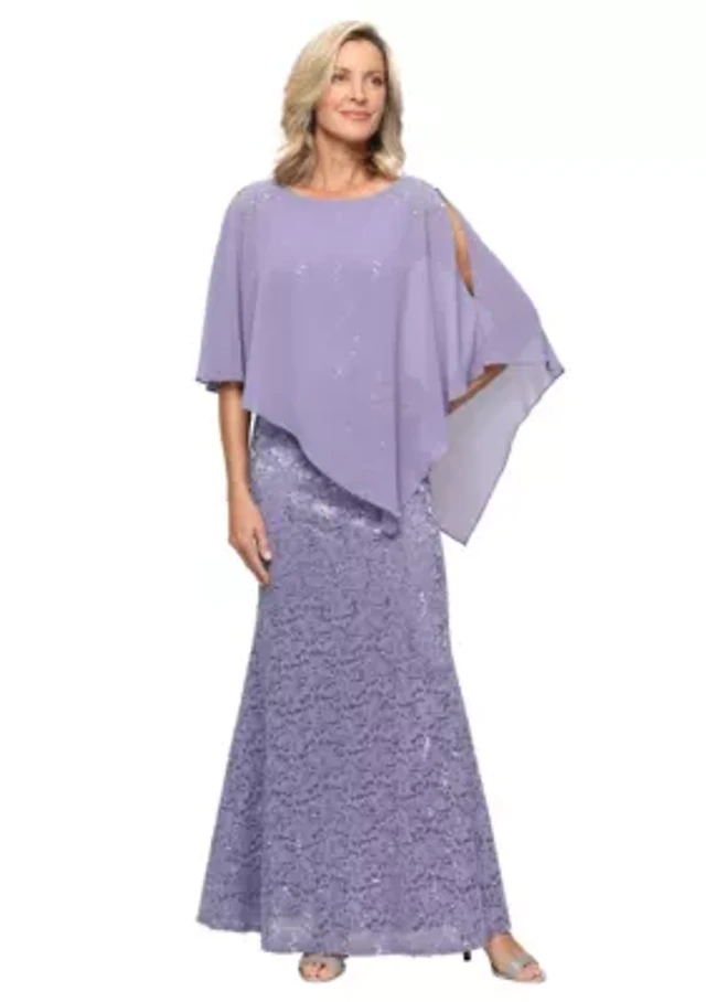 R & M Richards Petite Size Floral Print Illusion Neck Sleeveless Sequin Organza Gown