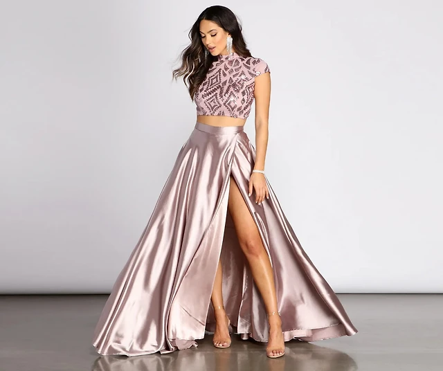 Persephone Formal Satin And Sequin Two-Piece Dress