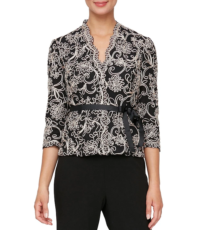 Petite 3/4 Sleeve Asymmetric Floral Embroidered Top