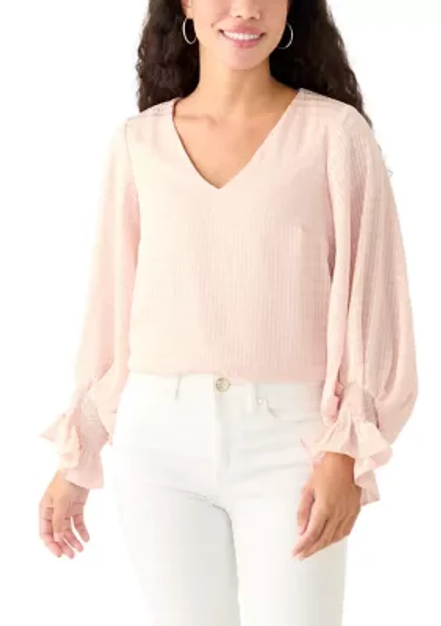 Petite Puff Sleeve Textured Knit Top