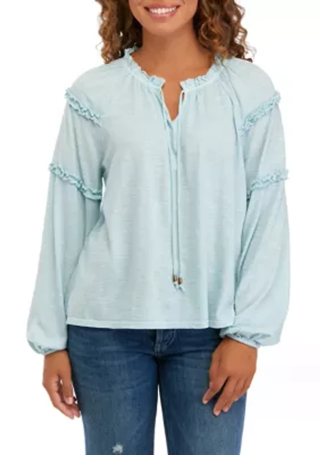 Petite 3/4 Sleeve Embroidered Peasant Top