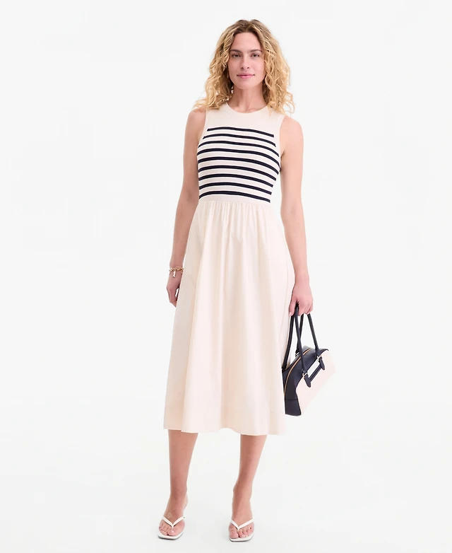 Gibson & Latimer Striped Knit Turtleneck Long Sleeve Shift Sweater Midi Dress