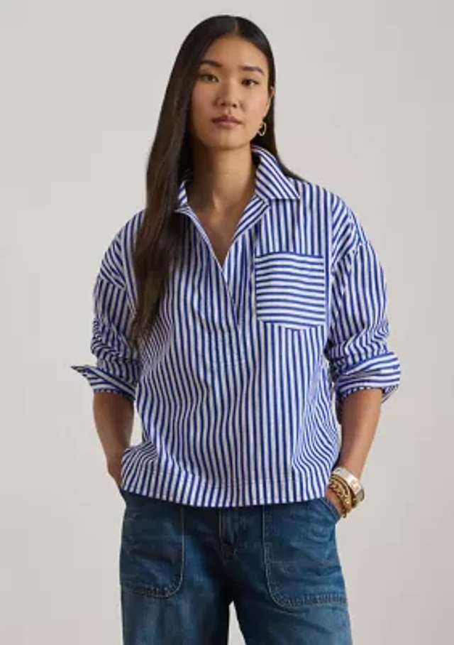 Lauren Ralph Lauren Petite Size Woven Point Collar Long Sleeve Button Front Shirt