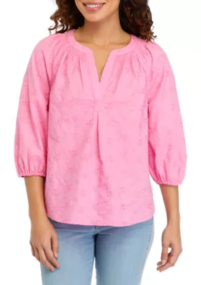 Alfred Dunner Petite Soutache Floral Embroidered Top