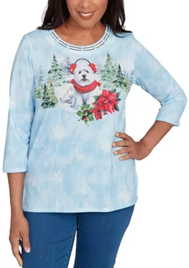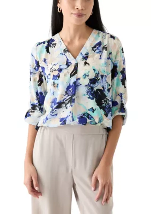 Alfred Dunner Petite Lake Champlain Asymmetrical Watercolor Flower Top