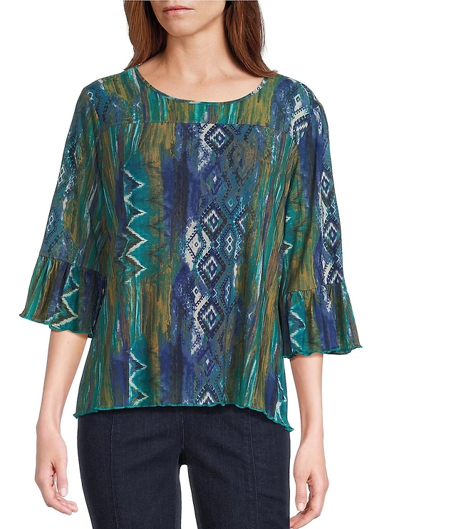 Ruby Rd. Petite Size Abstract Textured Pucker Knit Scoop Neck 3/4 Sleeve Top