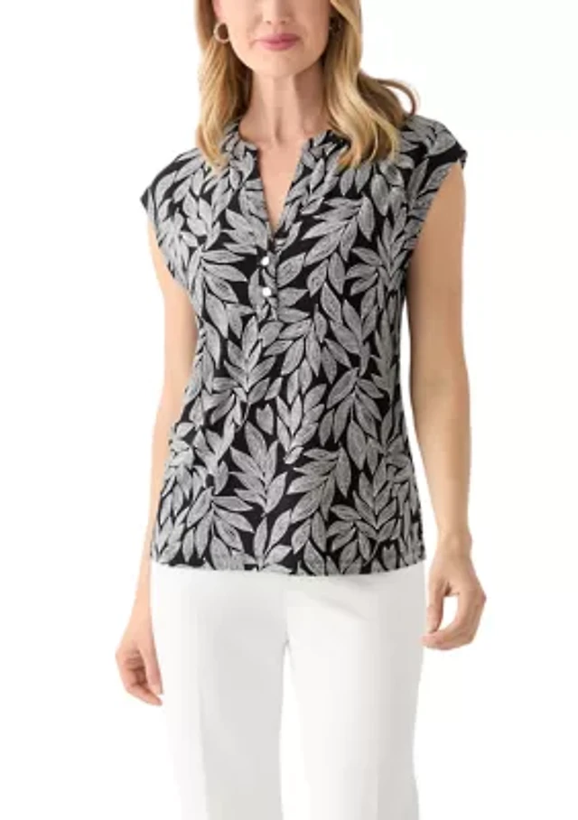 Petite Elbow Sleeve Smocked Cuff Blouse