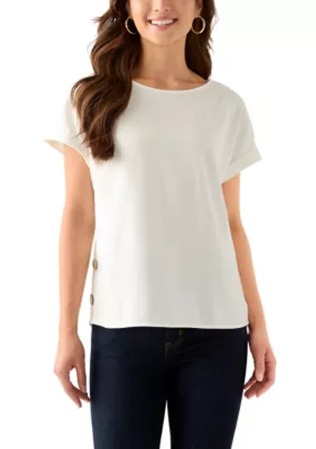 Petite Short Sleeve 2 Button Dolman Knit Blouse