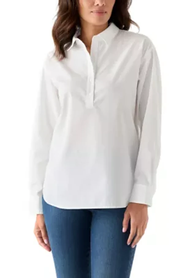 Ann Taylor Embroidered Ruffle Collar Shirt Women's