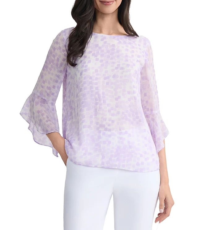 Anne Klein Women's 3/4 Sleeve Floral-Print Ruffle-Sleeve Top