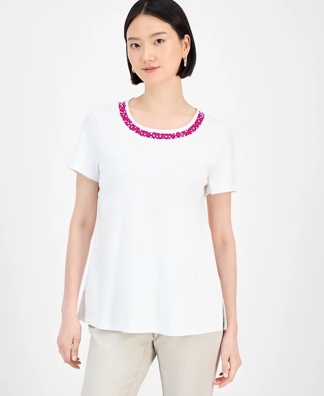 Jm Collection Women's 3/4-Sleeve Scoop Neck Top