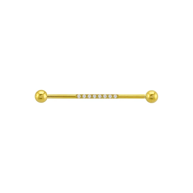 CZ Multiple Stone Goldtone Industrial Barbell - 14 Gauge