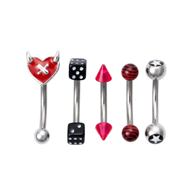 Multi-Pack Dice and Horned Heart Curved Barbells 5 Pack - 16 Gauge