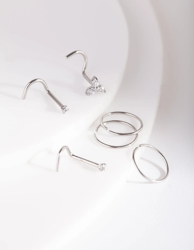 Surgical Steel Diamante Nose Ring & Stud 6-Pack