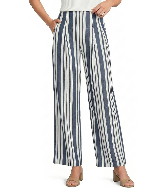 Antonio Melani Melinda Linen Stripe Flat Front Straight Leg Pants