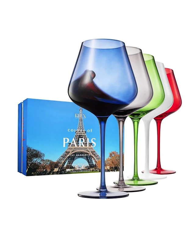 The Wine Savant Colors of Paris France Wine Glasses, Set of 5