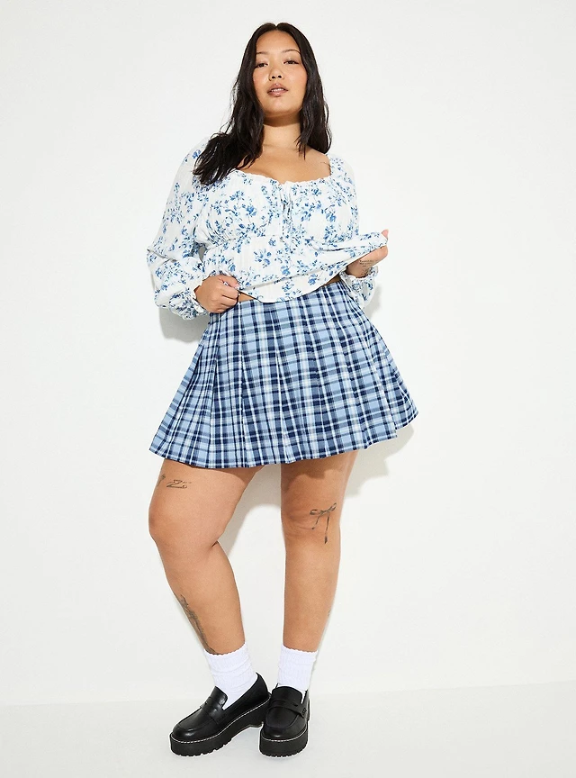 Edikted Ara Plaid Pleated Skort