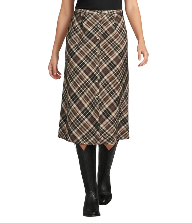 Reba Coordinating Lawson Woven Plaid Print A-Line Midi Skirt