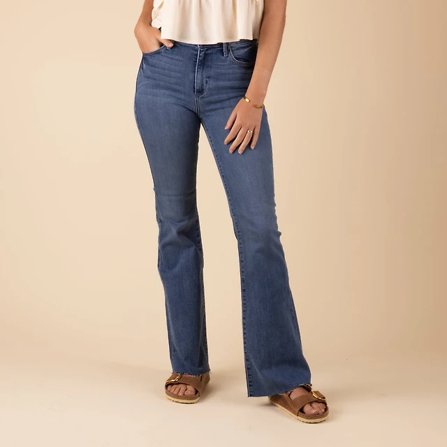 Indigo Multi-Pocket Denim Flare Jeans Plus Size