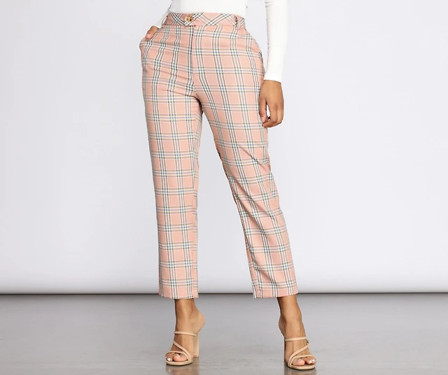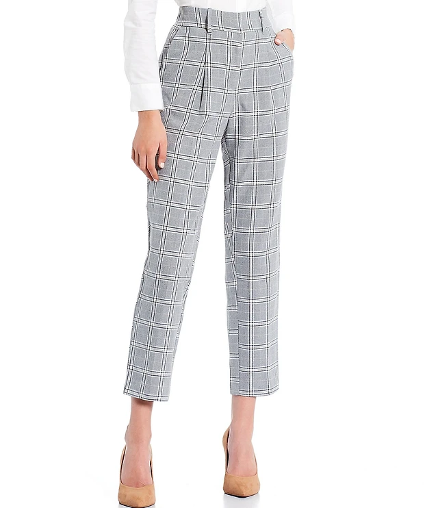 Intro Stella Solid Double Knit Plaid Pull-On Pants