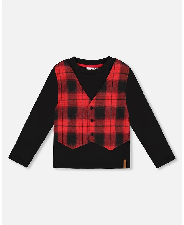 Deux par Toddler Boys T-Shirt with Plaid Vest Red and Black - Toddler|Child