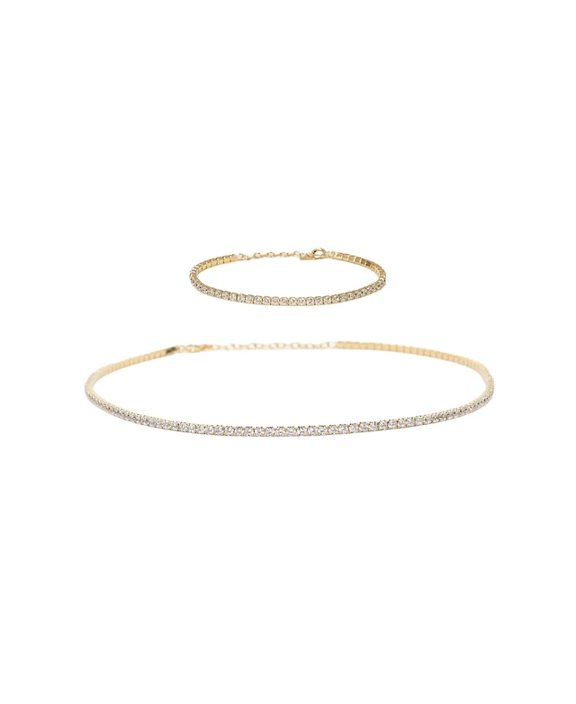 Sterling Silver 18k Gold Plated Cherie Tennis Necklace & Bracelet Set