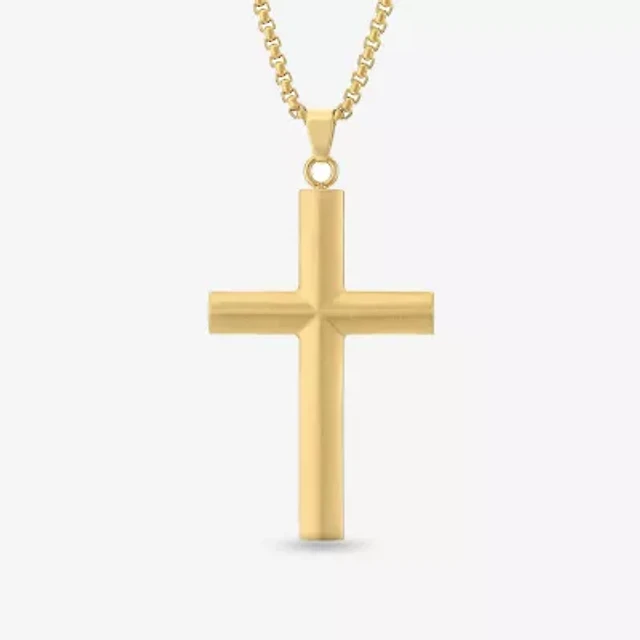 Mens Color-Enhanced Blue Diamond-Accent Black Ion-Plated Stainless Steel Cross Pendant Necklace