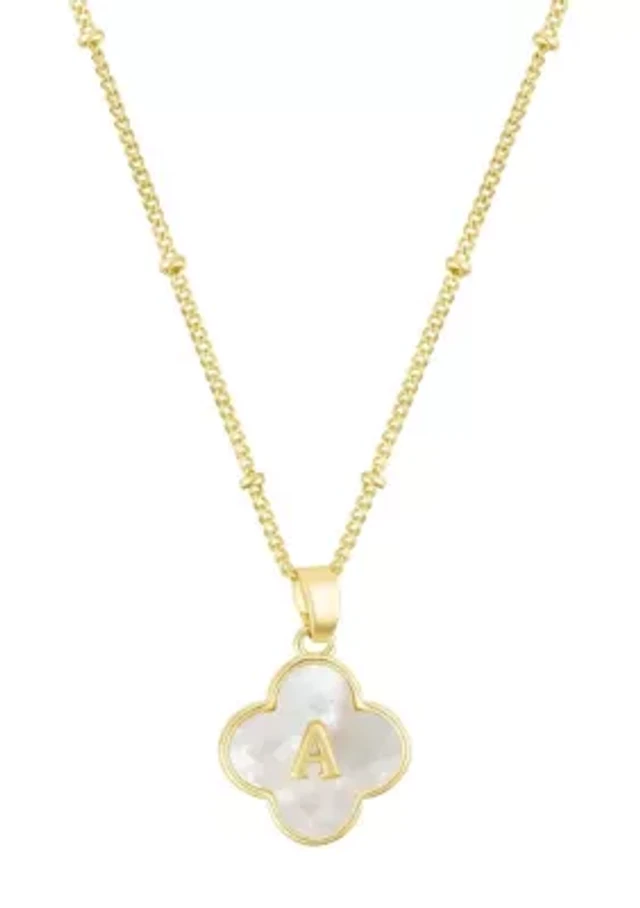 14k Gold Plated Mother-of-Pearl Initial Clover Necklace